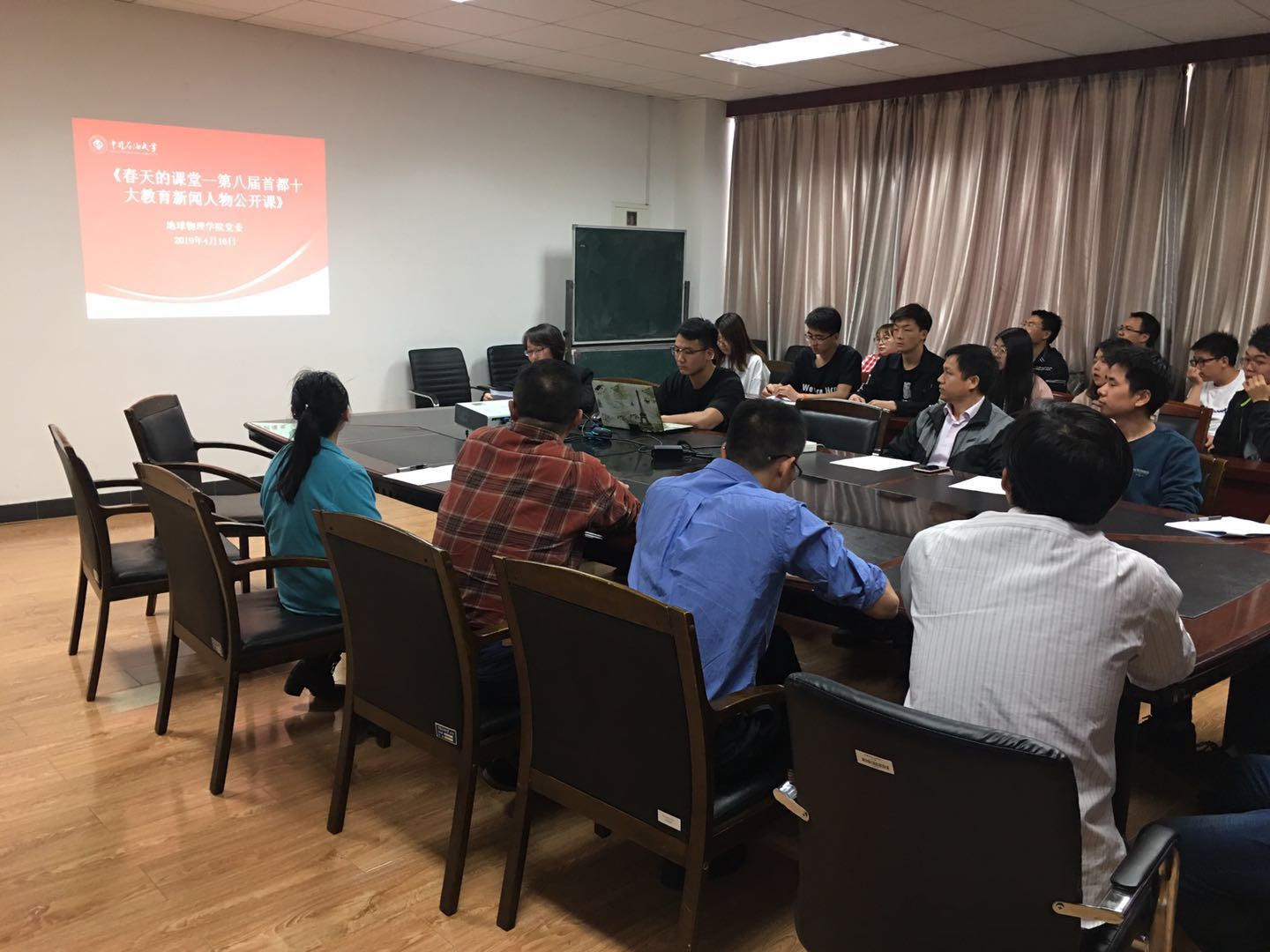 石大地球物理學院組織師生觀看《春天的課堂——第八屆首都十大教育新聞人物公開課》