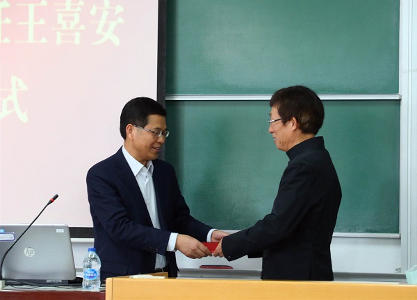 楊棉之對王喜安的到來表示感謝,提出本科生人才培養注重寬口徑、厚基礎和全面發展,王喜安具有良好的理論基礎和豐富的市場經驗,擔任本科生校外導師有利于提高學院人才培養質量。楊棉之為王喜安頒發了聘書。