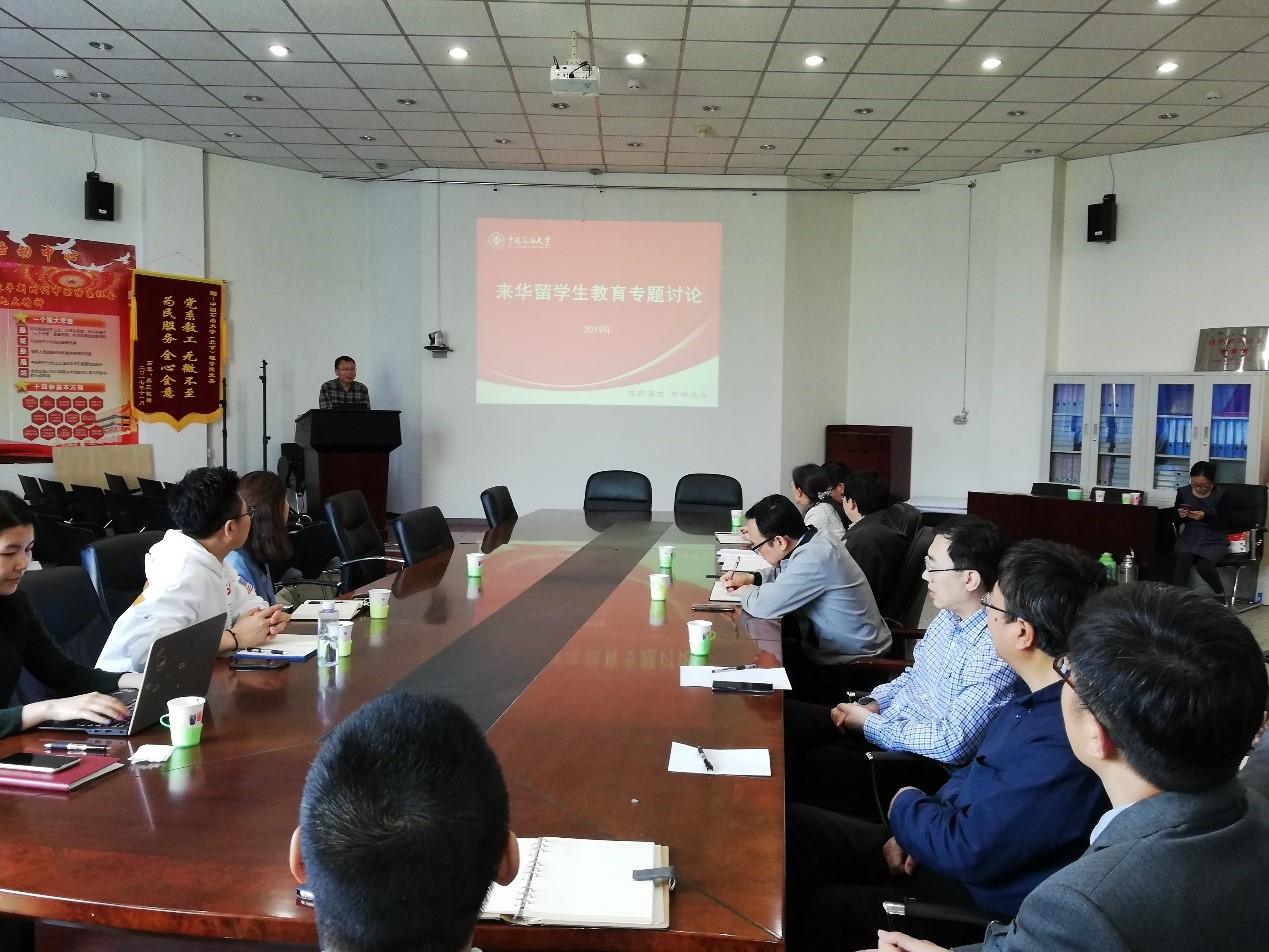 4月25日下午,中國(guó)石油大學(xué)理學(xué)院在理學(xué)樓B301會(huì)議室舉辦來華留學(xué)生教育專題講座。副院長(zhǎng)劉堅(jiān)主持,國(guó)際教育學(xué)院院長(zhǎng)張永學(xué)主講,近50名教師聽取了講座。