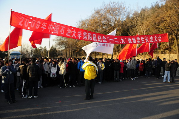 12月12日,由體育教學(xué)部組織的2009年第四屆中國石油大學(xué)(北京)紀(jì)念“一二.九”運動學(xué)生長走活動在十三陵水庫舉行。校黨委書記蔣慶哲、副校長徐春明及各院系負責(zé)人、學(xué)生共730人參加了本次長走活動。