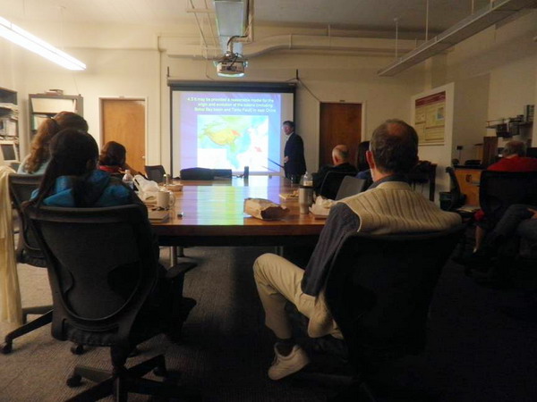 2010年1月20日,在UCLA(University of California, Los Angeles)訪問的資源與信息學(xué)院童亨茂副教授,因其在斷層模型研究的原創(chuàng)性工作,在參加2009年GSA(美國地質(zhì)協(xié)會)年會(在美國Porland召開)和AGU(美國地球物理聯(lián)合會)年會(在美國舊金山召開)后,應(yīng)著名教授An Yin(尹安)的邀請,作了題為“A new math-mechanical model of brittle faulting: theory, analog modeling and geologic application” (脆性斷層作用新的數(shù)學(xué)力學(xué)模型:理論,相似實驗和地質(zhì)應(yīng)用)的學(xué)術(shù)報告。報告后進行了熱烈的討論。其中另外還有兩個中國的訪問學(xué)者(來自中國地質(zhì)大學(xué)和中國地質(zhì)科學(xué)院)也參加了本次報告會。