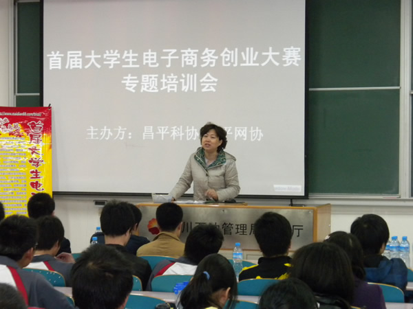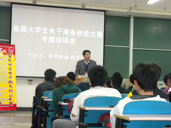 在講座中,計算機系領導為同學們簡要介紹了本次講座的主要內容和重要意義。昌平區科協大賽負責人主要介紹了關于首屆2010創想電子商務創業大賽的宗旨口號、報名方法等內容。昌平區網協的老師著重講了關于電子商務創業的一些思路、方法以及成功的一些案例。