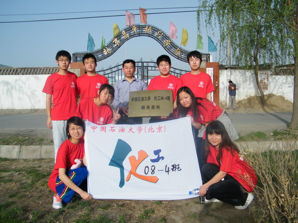 5月7日下午,中國石油大學(北京)化工08-4班學生代表來到位于昌平區的一所打工子弟學校––振興小學,舉行了“中國石油大學化工08-4班駐振興小學服務基地”的掛牌儀式。