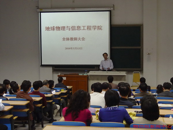 5月13日下午,地球物理與信息工程學院全體教師大會在新綜合樓第四階梯教室召開。學校相關部門負責人和物信學院全體教師參加了此次大會。