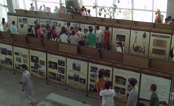 本次圖片展共有42塊展板,從“宏偉宮殿”、“國(guó)寶蒙難”、“重鑄輝煌”、“傳承發(fā)展”和“精展粹陳”共五方面展示出故宮博物院悠久燦爛的歷史、獨(dú)特宏偉的建筑以及豐富珍貴的收藏。活動(dòng)現(xiàn)場(chǎng)氣氛活躍,來參觀的同學(xué)們都懷著驕傲與崇敬的心情在圖片前駐足觀看,驚嘆于我國(guó)古代人民的勤勞與智慧,為中華文明的淵博而自豪。故宮博物院的2位專業(yè)講解員專程趕到圖片展現(xiàn)場(chǎng),為石油大學(xué)的廣大師生進(jìn)行講解。在精彩詳細(xì)的講解中,同學(xué)們進(jìn)一步了解了故宮文化的豐富內(nèi)涵和紫禁城古建筑的精湛技藝。