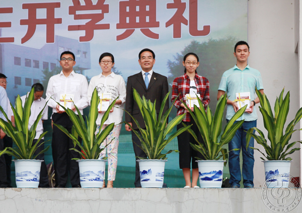 典禮在莊嚴的國歌聲中開始。黨委書記蔣慶哲向新生代表贈送了《紀念抗日勝利70周年讀本》、《科學道德與學術規范讀本》等學習材料。