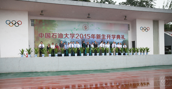 9月10日上午,中國石油大學在紅旗操場舉行2015年新生開學典禮,歡迎4900多名新同學的到來。校領導蔣慶哲、張來斌、剛文哲、雷玉江、吳小林、徐春明、龐雄奇、張士誠,副校級干部鮑志東,以及各學院和相關職能部門負責人出席了典禮。