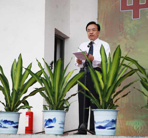 機械與儲運工程學院教授王瑋代表教師發言,希望同學們在成長的新起跑線上以嶄新的面貌投入到大學的學習和生活中;地球科學學院2014級研究生馮森代表在校生發言,倡導同學們確立目標,滿懷熱情,不斷提高,擁有一段精彩的大學時光,一段不悔的青春。化學工程學院2015級本科生黃子萌代表新生發言,號召同學們團結友愛、互幫互助,尊師肯學、持之以恒;來自哈薩克斯坦的孿生兄弟桑迪和康迪用流利的漢語代表留學生新生發言,表達了對在中國和石大學習生活的珍惜。