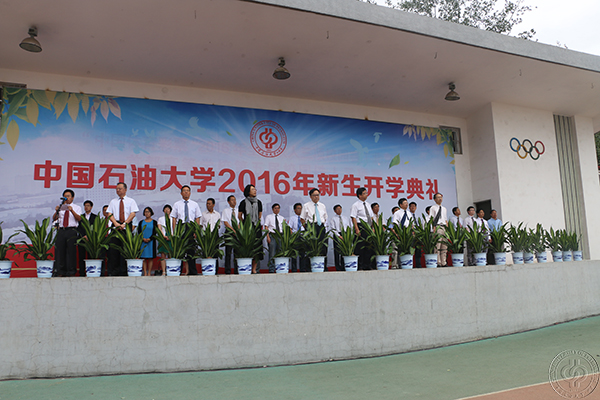 9月1日上午,中國石油大學在紅旗操場舉行2016年新生開學典禮,歡迎4000多名新同學的到來。校領導張來斌、剛文哲、雷玉江、吳小林、徐春明、龐雄奇,副校級干部鮑志東以及各學院和相關職能部門負責人出席了典禮。典禮由黨委副書記雷玉江主持。