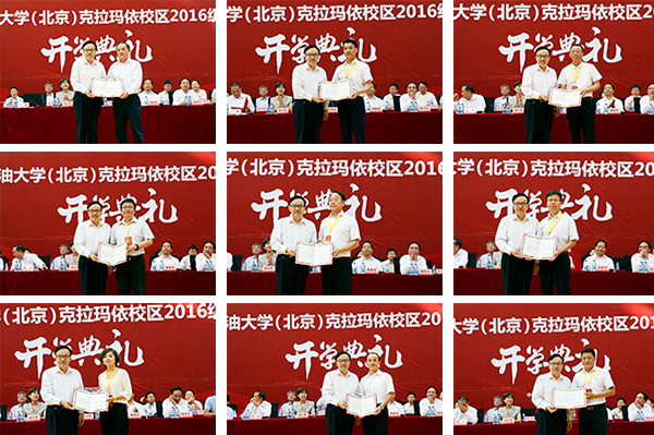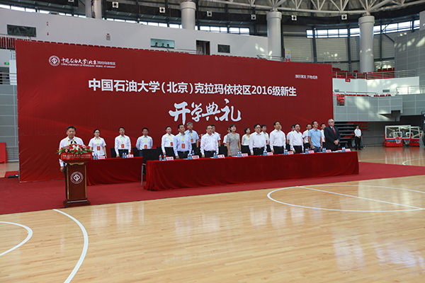 克拉瑪依市、新疆油田公司黨委書記陳新發,克拉瑪依市委副書記、市長張紅彥,克拉瑪依市委副書記、新疆油田公司黨委副書記、總經理楊學文等克拉瑪依市、新疆油田公司領導,中國石油東方地球物理勘探公司黨委書記、總經理茍量,中國石油獨山子石化分公司總經理陳俊豪,美國塔爾薩大學校長杰拉德·克蘭西,新東方教育科技集團有限公司董事長俞敏洪,中國石油大學校長張來斌,部分中央駐疆企業、駐克拉瑪依企業領導以及克拉瑪依市部分企業領導,克拉瑪依職業技術學院、中國石油新疆技師學院和新疆醫科大學厚博學院領導等,以及全校區師生共600余人共同見證了這一具有里程碑意義的時刻。典禮由中國石油大學副校長、克拉瑪依校區黨工委書記、管委會主任張士誠主持。