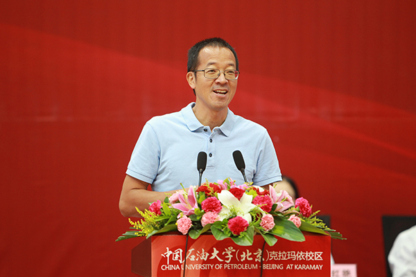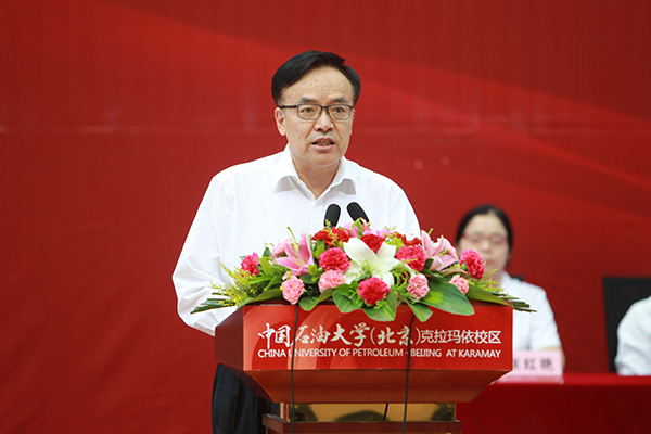 陳新發在致辭中說,中國石油大學是一所辦學歷史悠久、文化底蘊深厚,具有優良傳統和傳承精神的大學。尤其是石油石化等重點學科處于國內領先地位,并具有一定的國際影響力,被譽為“石油人才的搖籃”。中國石油大學克拉瑪依校區的設立,必將為克拉瑪依的經濟社會發展、新疆的繁榮穩定提供有力的科研支撐和智力支持,將為國家輸送更多的高層次應用型人才。他希望同學們珍惜寶貴的青春年華,志存高遠,腳踏實地,勇敢擔負起青年一代的責任和使命,成為國家的棟梁之才,成就屬于自己的精彩人生。