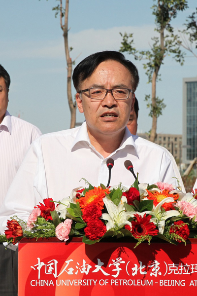 張來斌在致辭中代表校黨委、校行政向關心、支持校區建設發展的各級領導和各界友人表示衷心的感謝。他說,克拉瑪依校區的建立和啟用,是學校在新的起點上建設高水平大學的重要標志,也是學校更好地服務新疆、服務地方的重要體現,具有里程碑式的重大意義,必將載入新疆高等教育和中國石油大學的發展史冊。石大將按照“一校分兩區,兩區屬一校”的布局,通過差異化戰略,促進兩校區互補借力協同發展,共同打造石油石化學科領域世界一流研究型大學;將按照“高層次、應用型、國際化”的理念,把克拉瑪依校區建設成為我國高等工程教育改革的示范基地,為服務“一帶一路”建設和國家能源發展戰略做出積極貢獻。