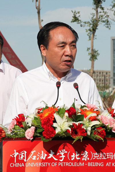 朱之文發表了熱情洋溢的講話,代表教育部向學校師生員工致以熱烈的祝賀,向為校區付出辛勤勞動的建設者表示由衷的敬意,向新疆維吾爾自治區和克拉瑪依市黨委、政府長期以來對中國石油大學的支持表示感謝。他說,中國石油大學多年來秉承“厚積薄發,開物成務”的校訓,實事求是,艱苦奮斗,開放辦學,嚴謹治校,形成了優良的辦學傳統和鮮明的辦學特色,是我國石油化工行業高層次人才培養的重要基地,為我國社會主義現代化建設特別是石油化工產業發展作出了重要的貢獻。建設好中國石油大學(北京)克拉瑪依校區,對于促進新疆經濟社會發展,引領新疆高等教育結構調整,促進新疆產業升級,服務國家能源戰略和“一帶一路”核心區建設,具有十分重要的意義。他希望學校按照中央“四個全面”戰略部署,遵循“創新、協調、綠色、開放、共享”的發展理念,緊緊抓住絲綢之路經濟帶核心區建設的重大歷史機遇,深入推進學校綜合改革,不斷優化學科專業布局和人才培養結構,創新人才培養模式,立足新疆,面向西部,輻射中亞,努力把克拉瑪依校區建設成為新疆民族團結教育的精神高地,應用型人才特別是少數民族人才培養的重要基地,成為學科優勢明顯、辦學特色鮮明,在周邊具有重大影響的高水平大學,在新的征程上不斷創造新的佳績,為全面建成小康社會做出新的更大貢獻。他表示,教育部高度重視克拉瑪依校區的建設和發展,將采取適當方式繼續對學校予以支持,希望自治區和克拉瑪依黨委、政府加強對學校辦學的支持、指導與管理,為學校改革發展提供有力的保障。