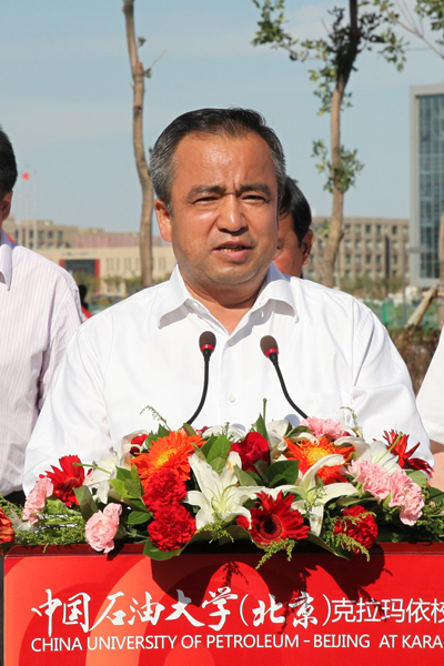 艾爾肯·吐尼亞孜在致辭中表示,中國石油大學(北京)克拉瑪依校區的設立,是國家教育援疆的重要成果,是教育部以及中國石油大學(北京)的重要戰略舉措,對優化自治區高教布局,引領新疆高等教育事業的發展,為新疆培養高層次專業人才,提升新疆科技創新能力和綜合競爭實力,服務新疆社會穩定和長治久安具有重要的現實意義和長遠的歷史意義。他希望克拉瑪依校區面對新疆絲綢之路核心區建設的重大歷史機遇和建設創新驅動發展的有力契機,充分發揮區域優勢和品牌優勢,堅持教育部、自治區、克拉瑪依市共建的發展模式,走特色發展道路,高質量,高水準,為新疆建設絲綢之路核心區提供強有力的人才支持和智力保障。