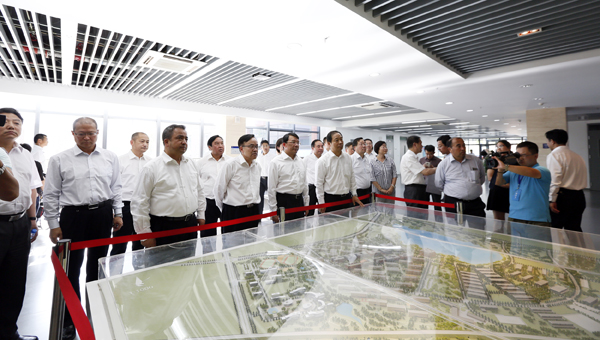 儀式結束后,全體嘉賓及領導參觀了克拉瑪依校區辦學歷程及事業規劃展、校區沙盤和實訓基地。