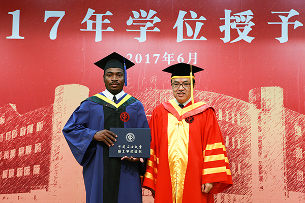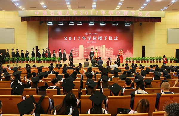 6月22日至23日上午,中國石油大學(xué)舉行2017年學(xué)位授予儀式,校長張來斌向獲得博士、碩士、學(xué)士學(xué)位的3955名2017屆畢業(yè)生一一頒發(fā)了學(xué)位證書,并留下珍貴合影。