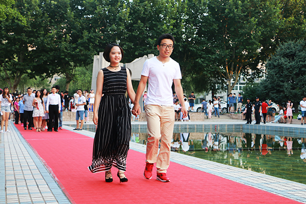 本屆紅毯禮分為“與君之恩”師生篇、“與君相見”特別篇、“與君相戀”愛情篇、“與君相遇”友情篇4個篇章。在師生篇中,各學院負責人攜畢業生代表依次走上紅毯并送上深情祝福,向圓滿完成學業的畢業生們表示祝賀,希望畢業生們發揚石大優良傳統,腳踏實地、努力工作、報效祖國、回報社會,在不同的工作崗位上創造屬于自己的精彩人生;在特別篇中,宿舍管理人員、食堂師傅、安保人員、校醫院醫生、圖書管理員等走上紅毯,引得現場觀眾的熱烈掌聲;在愛情篇中,畢業生情侶們或十指緊扣,或深情對視,展現了校園愛情的甜蜜與幸福;在友情篇中,閨蜜同行或同學相伴,面對即將作別的大學生活,他們不訴離殤,將最甜美的笑容留在了石大,定格在最美的青春里。