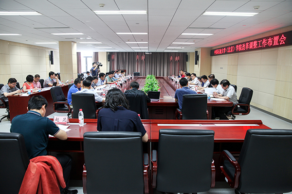 5月18日,中國石油大學召開學院(研究院)改革調整工作布置會,正式啟動學院改革調整工作。黨委書記山紅紅,校長張來斌,副校長吳小林,黨委副書記雷玉江,副校長鮑志東,相關職能部門負責人,擬建學院籌備工作小組成員,相關學院(研究院)書記、院長參加會議。會議由山紅紅主持。