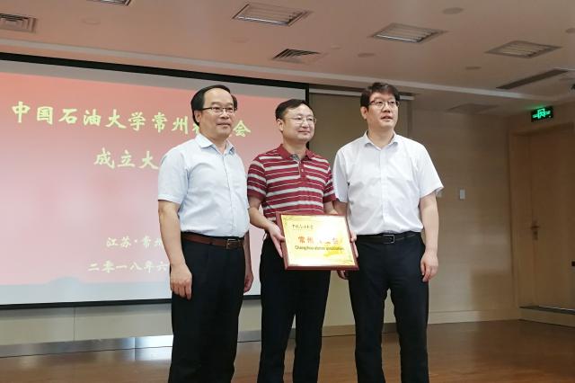韓尚峰、姚軍為中國石油大學常州校友會的成立授牌。