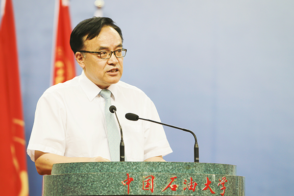 校長張來斌在畢業典禮發表了情深意長、鼓舞人心的講話。他說,感謝同學們的溫情陪伴,與石大共同親歷了學校進入“雙一流”建設高校行列,目睹了校園從“曾經的南北”到現在的“無問西東”,共唱著校歌《我為祖國獻石油》迎接學校65周年華誕。他指出,同學們生逢前所未有的新時代,新時代面臨新挑戰、更有新機遇,新時代需要他們有大夢想、更呼喚大擔當,新時代需要他們融入、更需要他們成為建設者和接班人。