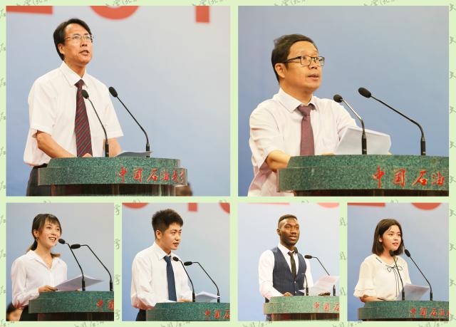 畢業本科生代表工商管理學院金甜甜、畢業研究生代表石油工程學院李亞濤、畢業留學生代表加納籍留學生汪智東分別發言,深情講述了自己對母校的熱愛與感恩,抒發了對師長無私教誨的感謝,表達了對個人成長成才的美好期許;在校生代表地球科學學院阿比德感謝學長學姐的幫助與支持,祝福學長學姐未來鵬程萬里,前程似錦;教師代表馬克思主義學院龐昌偉教授表達了對畢業生深深的不舍,送上了深情的祝福;優秀校友代表路保平分享了自己的工作經歷,寄語畢業生堅定信念、不忘初心、做奮發有為的石油人,腳踏實地、勇于創新、做干事創業的先鋒,為美好的未來努力奮斗。