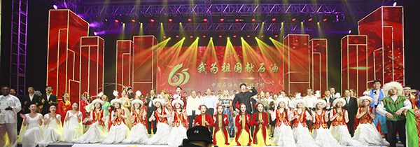 在晚會的最后,全體演員和現場嘉賓觀眾齊聲高唱校歌《我為祖國獻石油》,激昂的歌聲表達著石大人對母校、對石油事業、對偉大祖國的無限熱愛。中國石油大學建校65周年文藝晚會在喜慶、熱烈、感人的氛圍中圓滿落幕。