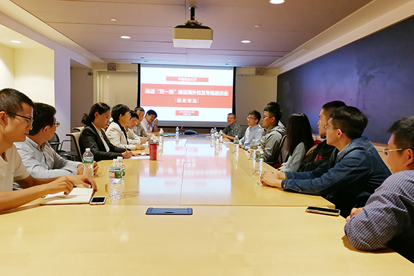 山紅紅一行看望了來自哈佛大學、耶魯大學、麻省理工學院及斯倫貝謝-道爾研究中心的20多名石大海外校友,召開了中國石油大學推進“雙一流”建設海外校友專題座談會,與校友們親切座談,向校友們介紹了學校人才政策,歡迎校友們學成歸國、常回母校看看。會上,“中國石油大學美東校友會”成立,校友們紛紛表達對母校培養的感謝之情,并紛紛對母校建校六十五周年表示祝賀,為母校“雙一流”建設獻計獻策。