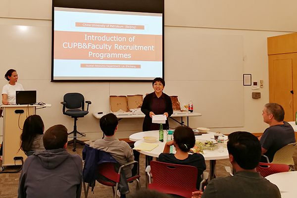 山紅紅向哈佛大學100余名師生代表宣講了中國石油大學教學科研情況及高層次人才政策,并向哈佛大學及波士頓地區高層次人才發出誠摯邀請,熱情歡迎他們到中國石油大學訪問交流和工作,哈佛大學師生代表反響熱烈。
