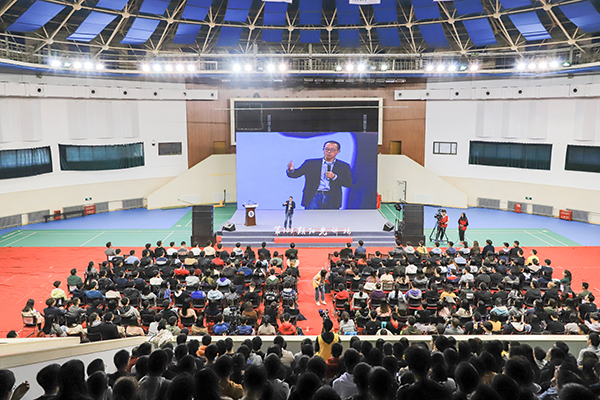 報告中,俞敏洪結合自身的成長經歷、社會熱點問題以及大量富含哲理的小故事,為師生們的人生布局“出謀劃策”,贏得師生們多次熱烈掌聲。他認為把握大學生活要“葆有愉快的心境”,這樣才能更好地專注于自身當下、專注于眼前世界的美好、專注于未來人生發展和布局;要“具有取得突破的能力”,有決心、有毅力、有勇氣不斷嘗試創新、不斷挑戰探索、不斷突破自我,讓青春年華綻放出最動人的光彩。他希望同學們熱愛生活、熱愛學習、開闊胸襟、開拓視野,繪就人生大格局,成就人生新輝煌,迎接美好新未來,成長為社會主義建設者和接班人。