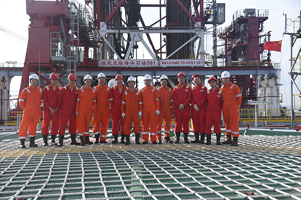 楊進教授團隊與中海油深水項目組在海洋石油981作業現場合影