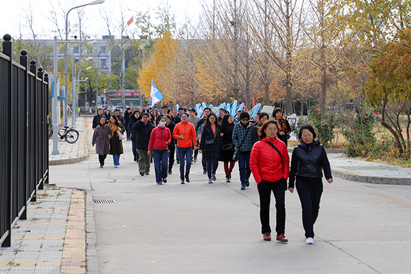 活動線路為環東校園兩周,總長度約5公里。行進途中,教職工精神飽滿,興致高昂,呼吸著清新空氣,欣賞著初冬校園景色,感受新校園的建設與發展,享受著健步走帶來的快樂。