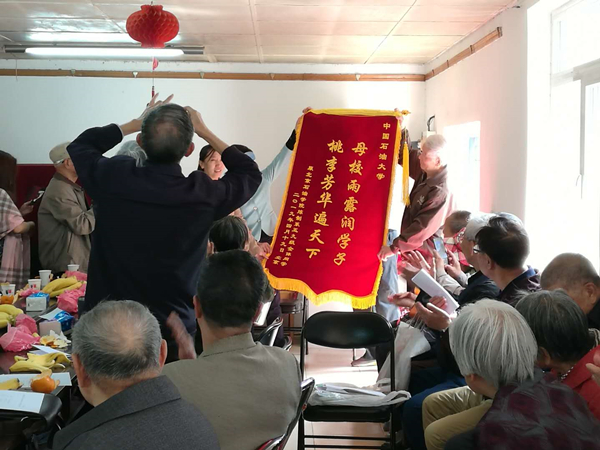 老校友們在石油大院舉行了座談會,大家回顧了在母校學習生活的時光,感謝母校和當年的老師對自己在品格、知識等方面的培養,對學校的發展變化感到欣慰,祝福學校越辦越好。校友們還參觀了曾經學習生活的校園,回憶著在校時的美好時光,從毛澤東塑像到老教學樓再到大禮堂,無不勾起大家溫暖又難忘的回憶。活動后,老校友們向母校贈送了錦旗。