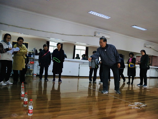 運動會在離退休陶笛社表演的快閃《祝福祖國》中拉開帷幕。根據離退休教職工的身心特點,設立了拍籃球、投飛鏢、擲沙包和套圈4項集趣味性、競技性和娛樂性為一體的比賽項目。老教師們有序、積極踴躍地參加各項比賽,營造了緊張又不失妙趣的比賽氛圍,展現了老當益壯、健康向上的精神風貌。