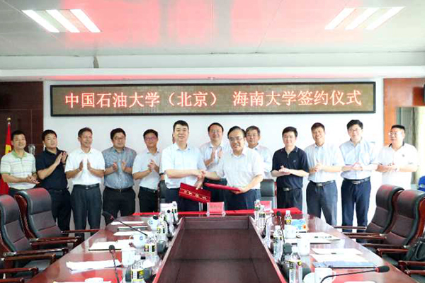 武耀廷對張來斌一行來訪表示歡迎,從辦學歷史、辦學理念等方面簡要介紹了海南大學的基本情況,并希望兩校在海洋油氣資源開發方面加強合作。張來斌從學科建設、科學研究、人才培養等方面介紹了石大的基本情況,指出兩校開展深入合作是落實習近平總書記海南“4·13”重要講話精神的舉措之一,石大歷來堅持開放辦學的理念,兩校應以中海油為依托,發揮各自優勢,從海洋工程著手,逐步在海洋石油地質、海洋油氣資源利用、化學工程與技術等方面開展全面合作。他強調,雙方應以開展科學研究為基礎,聯合進行以工程博士為代表的高層次人才培養,兩校通過優勢互補與協同創新,必將實現合作雙贏和共同發展。李中表示,中海油海南分公司將全力支持中國石油大學和海南大學建設南海資源聯合研究院。