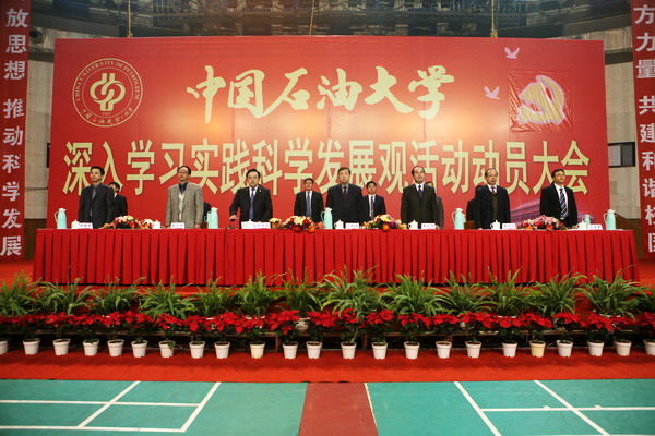 蔣慶哲強調,這次學習實踐活動要緊密結合社會主義現代化建設戰略需求和培養中國特色社會主義事業合格建設者和可靠接班人的根本任務,突出科學發展這個主題,抓住領導班子和黨員干部這個重點,緊緊圍繞“黨員干部受教育、科學發展上水平、人民群眾得實惠”的總要求,進一步明確辦學思路、強化辦學特色、提高辦學質量、完善體制機制、建設和諧校園,著力轉變不適應、不符合科學發展的思想觀念,著力解決影響和制約科學發展以及黨員干部黨性黨風黨紀方面的問題,著力構建有利于科學發展的體制機制,提高領導科學發展能力,促進學校朝著石油石化學科領域世界一流的研究型大學的宏偉目標又好又快發展。
