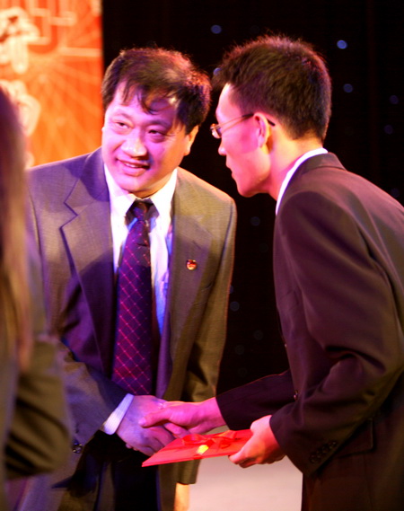 中國石油化工集團公司人事部副主任傅興順先生為獲獎學生頒獎