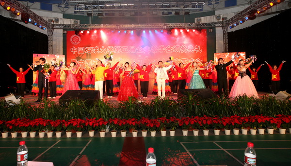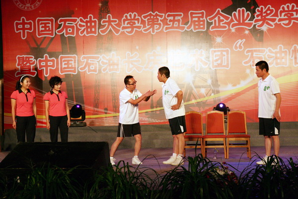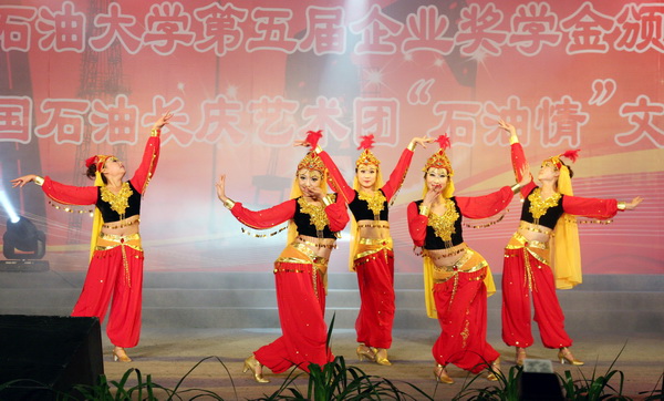 參加中國石油文化論壇的領導和嘉賓,出席我校第五屆企業獎學金頒獎典禮的代表們,與我校近2000名師生一起興致勃勃地觀看了演出。