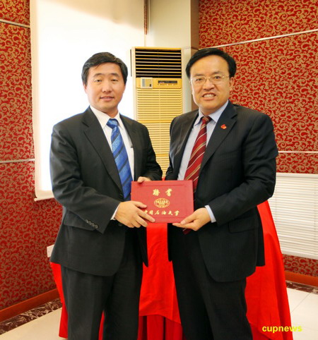張來斌校長和姜錫肇總裁分別代表校企雙方在意向書上簽字。姜錫肇總裁受聘為我校兼職教授,張來斌校長為其頒發了兼職教授聘書。
