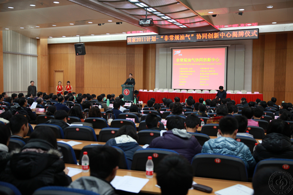 中國石油大學(北京)黨委副書記雷玉江,副校長吳小林、陳大恩、徐春明、張士誠,以及全體二級干部、“非常規油氣協同創新中心”部分研究人員近300人參加了揭牌儀式。