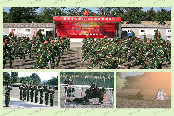 9月21日上午,中國石油大學2013級學生軍訓結訓典禮在平北學生軍訓基地隆重舉行,校長張來斌,黨委副書記雷玉江,黨政辦公室、學生工作處、校團委和各學院負責人,以及平北軍訓基地和承訓部隊的相關領導出席了典禮。