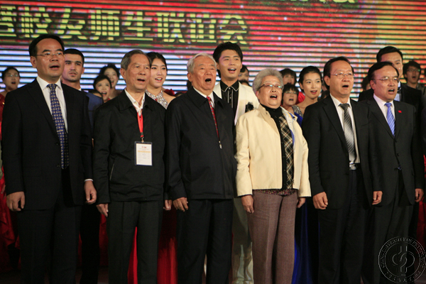 尾聲《共贏未來(lái)》以大合唱《我愛(ài)你,中國(guó)》開始。激昂的歌聲表達(dá)著石大人對(duì)母校、對(duì)石油事業(yè),對(duì)偉大祖國(guó)的無(wú)限熱愛(ài)。吳儀校友等在場(chǎng)嘉賓上臺(tái)與全場(chǎng)觀眾齊聲高唱《我為祖國(guó)獻(xiàn)石油》,中國(guó)石油大學(xué)建校60周年慶祝大會(huì)暨校友師生聯(lián)誼會(huì)在喜慶、熱烈、感人的氛圍中圓滿落幕。