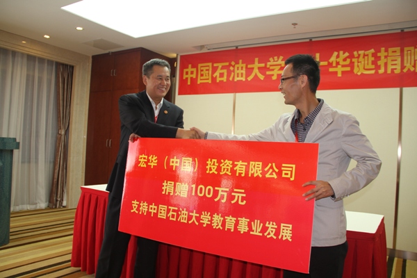 10月2日,宏華集團公司向中國石油大學捐資100萬元,支持學校事業發展。捐贈儀式在翠宮第五會議室舉行,宏華集團公司副總裁馮尚飛,中國石油大學副校長陳大恩以及相關職能部門負責人參加了捐贈儀式。