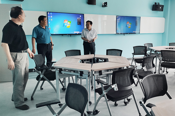 在潤杰學生公寓,張來斌仔細檢查了暑期改造并重新投入使用的學生浴室、新建的早餐餐廳,詢問了公寓各項服務保障設施和學生日常生活服務情況。在東校園,張來斌前往主教學樓、第五教學樓、第三食堂以及便利店等,仔細查看了智慧教室、階梯教室以及學生食堂的建設和運行情況,對后勤的暑期工作和開學前準備工作予以肯定,并要求繼續堅持以學生為本,不斷提升各項硬件和軟件設施,更好地為學生服務。