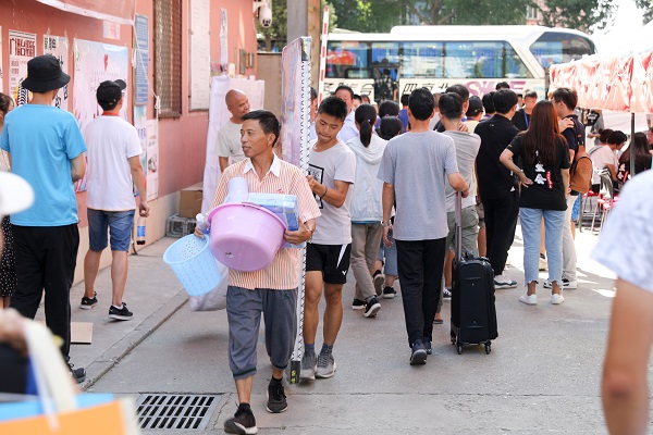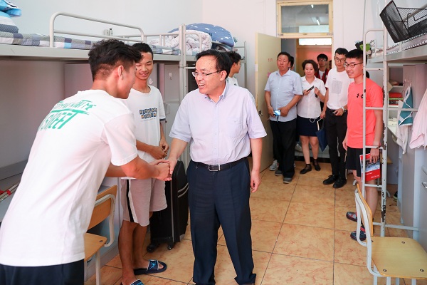 迎新期間,黨委書記山紅紅、校長張來斌分別來到東校園、潤杰學生公寓看望報到的新生和家長,檢查迎新工作。他們詳細查看了各學院、各社團的新生接待點,向迎新工作人員詢問新生報到情況,與新生和新生家長親切交談,勉勵新生珍惜時光、厚積薄發,用青春書寫精彩人生。