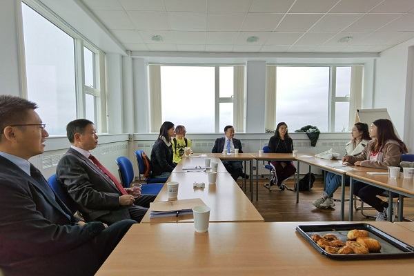 張來斌一行與在里斯本高等技術學院和鄧迪大學學習的石大學生座談交流。張來斌詳細詢問了同學們的學習生活情況,勉勵同學們扎實學習、獲得優異成績,努力為母校爭光,并雙方合作發揮橋梁作用。此外,張來斌一行與多位有意來石大工作的應屆博士生交流,并介紹了學校人才引進政策和職業發展前途。