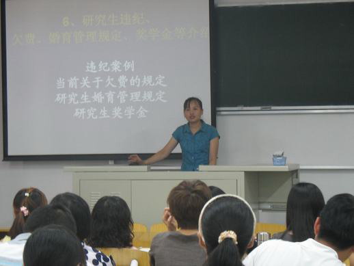 9月2日下午2:00,人文社科部在二教102教室舉行了2009級研究生入學教育。人文社科部黨總支書記肖中瓊和系副主任李衛紅作為主講人參加此次新生入學教育大會。
