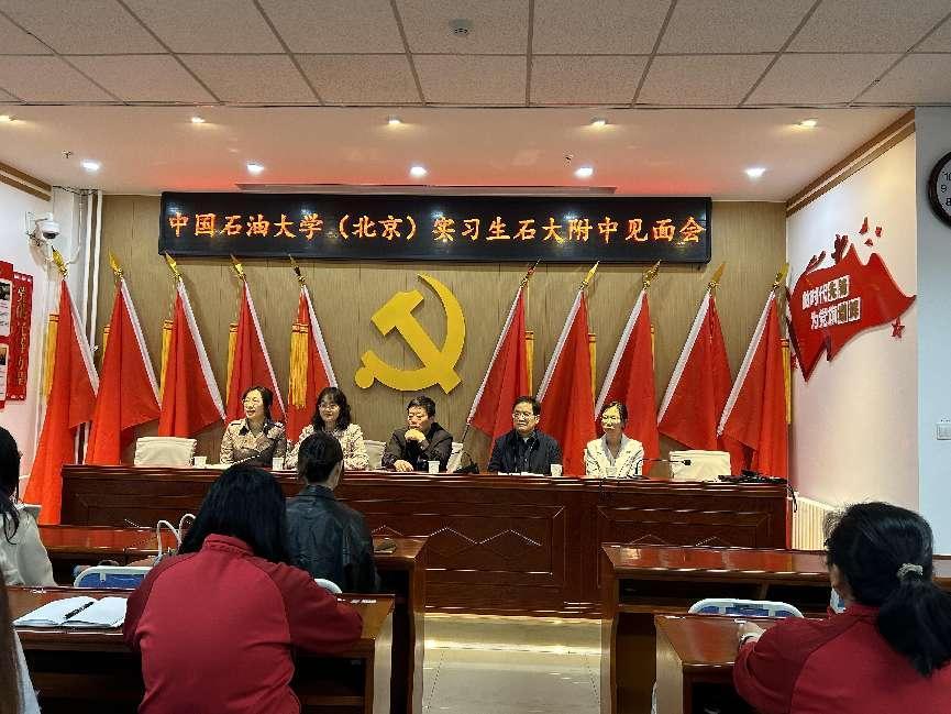 金秋十月,微風送爽。10月23日清晨,中國石油大學(北京)馬克思主義學院思想政治教育專業2020級10名本科生來到了石大附中,并將于10月23日至11月20日開展為期一個月的實習工作。作為馬克思主義學院的第一批本科生,同時也是石大附中與中石大合作建校以來第一批實習生,馬克思主義學院對學生們寄予厚望,并于當日與中國石油大學(北京)外國語學院、石大附中一同組織召開了實習生見面會。