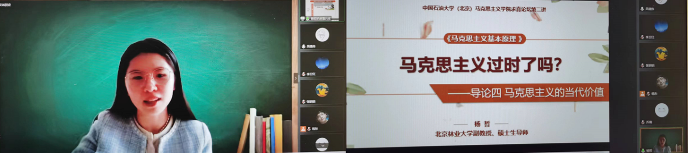 為進(jìn)一步提高思政課教學(xué)水平,提升教師教學(xué)能力和教學(xué)質(zhì)量,12月8日上午,我院舉辦了本學(xué)年“求真論壇”第二講——教學(xué)經(jīng)驗(yàn)分享會(huì)。本次活動(dòng)邀請(qǐng)清華大學(xué)馬克思主義學(xué)院張牧云副教授、北京航空航天大學(xué)馬克思主義學(xué)院付麗莎副教授和北京林業(yè)大學(xué)馬克思主義學(xué)院楊哲副教授作為主講人,分享教學(xué)經(jīng)驗(yàn)。三位嘉賓都是近年涌現(xiàn)出的青年優(yōu)秀思政課教師,在教學(xué)、宣講領(lǐng)域取得了驕人成績(jī),本次受邀到我院進(jìn)行教學(xué)示范和經(jīng)驗(yàn)交流。會(huì)議由馬克思主義學(xué)院副院長(zhǎng)吳建偉主持,馬克思主義學(xué)院黨委書(shū)記劉韻秋、院長(zhǎng)張明明、副院長(zhǎng)龐昌偉和教師、學(xué)生共計(jì)120余人參加。