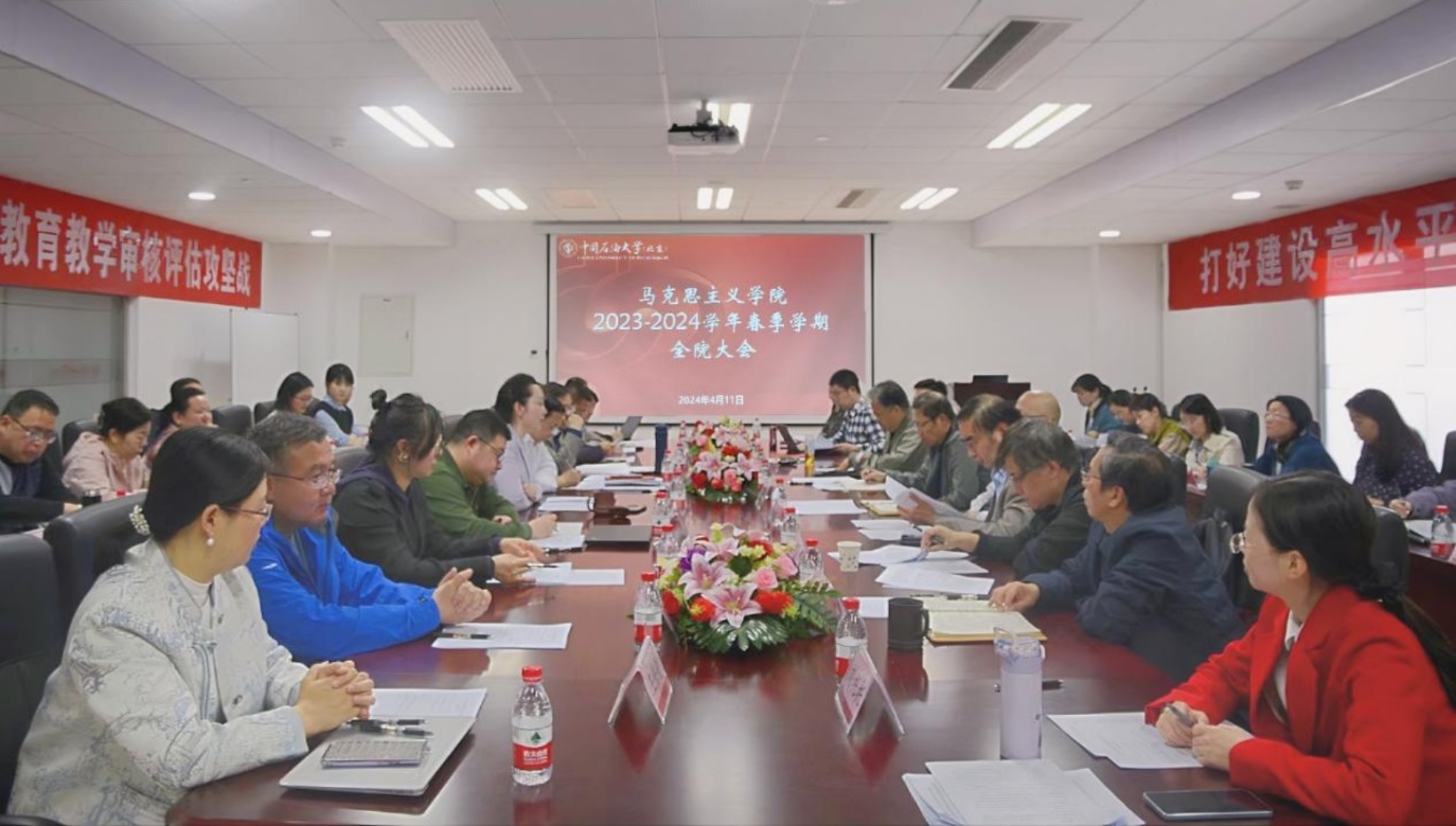 2024年4月11日下午,馬克思主義學院在主樓A1018會議室召開2023-2024學年春季學期全院大會暨本科教育教學審核評估工作推進會,會議由本科教學副院長吳建偉主持,全體教職工參會。