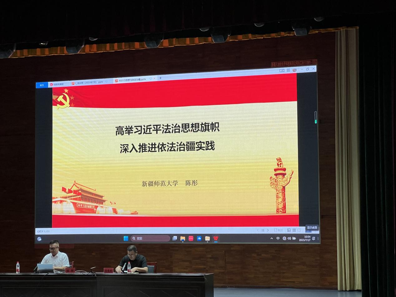 專題講授方面,新疆師范大學(xué)黨委書記、副校長(zhǎng)陳彤圍繞著習(xí)近平法治思想及其核心要義、治疆過程中宗教立法和宗教事務(wù)管理的實(shí)踐、依法治疆的意義和路徑等,向?qū)W員們作了題為《高舉習(xí)近平法治思想旗幟 深入推進(jìn)依法治疆實(shí)踐》的講座。講座深入淺出、鞭辟入里、精彩紛呈。通過講座,學(xué)員們進(jìn)一步增強(qiáng)了法治理念與思維,深刻理解了習(xí)近平法治思想與新時(shí)代黨的治疆方略的關(guān)系,筑牢了中華民族共同體意識(shí)。